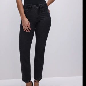 Gently worn Good American Good Legs Straight jeans women’s size 2. Stretch denim, high waisted, contour waist eliminates gapping, five pocket styling, washed black, straight leg opening, full length. Unsized, but fits size 2. Offers accepted!