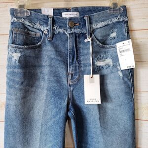 Good American Good Legs Straight Stretchy Distressed Denim Jeans Cotton/Elastane