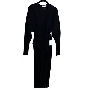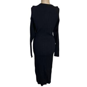 Good American Black Ribbed Knit Long Sleeve Bodycon V Neck Midi Dress size L