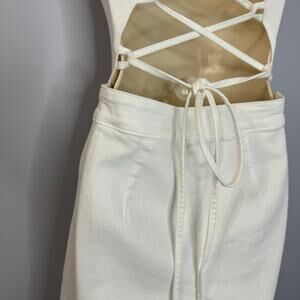 Good American Vacay Denim Jumpsuit Wide Leg Lace up BackTie Back White Sz 2