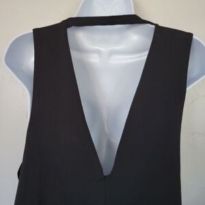 Good Luck Gem XS Black Tuxedo Collar Dress Mini Deep V-neck Plunge Open Back