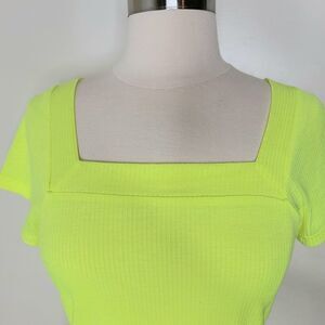 Perfect summer outfit by Good Luck Gem NWT neon yellow/green ribbed top Size S #0881B