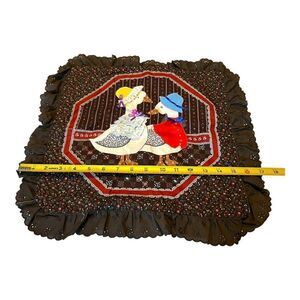 Add a touch of quaint charm to your living space with this delightful vintage handmade quilted lace throw pillow. Measuring at 17"x17", this cozy pillow features adorable country ducks, perfect for any cottagecore décor. The intricate handmade design and use of high-quality materials ensure this pillow will remain a cherished accent piece for years to come. Ideal for any home décor and accent enthusiasts, this pillow is a must-have addition to your collection.