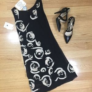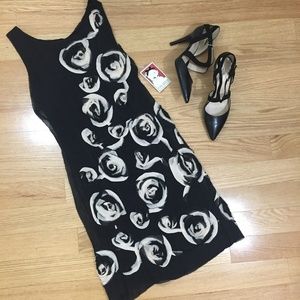 Dainty black & ivory roses, add a special touch to this classy dress.