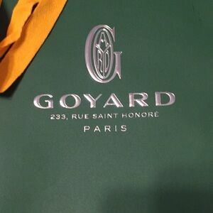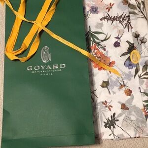 Goyard shopping back with silver foil details, yellow fabric handles and yellow interior