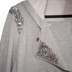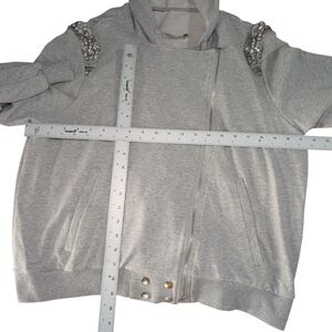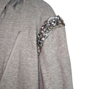 Elevate your style with this chic gray embellished jacket. Perfect for adding a touch of elegance to any outfit.