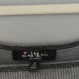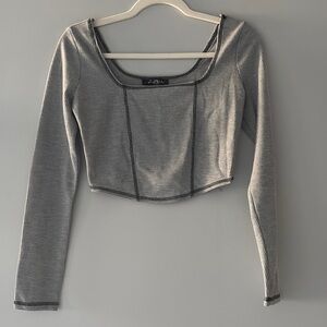 Super cute crop top gray base color with black stitching detail on front back and sleeves. long sleeve.