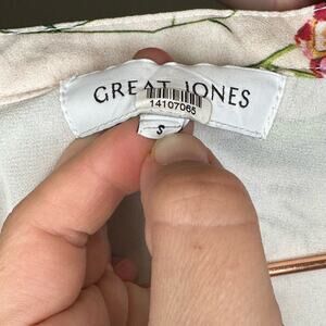 Great Jones White Floral Shift Magnolia Flower Summer V Neckline Dress sz Small