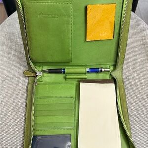 Green Leather Binder with phone case and credit card slots-Authentic!