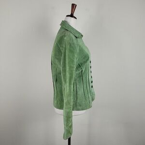 Green Suede Jacket Womens Small Leather Short Western Boho Snaps Festival Rodeo