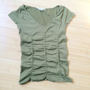 Green stretch top with ruching. Worn a couple times, still in excellent condition.