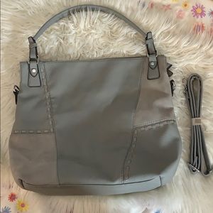 Grey Faux Leather Hobo Tote Shoulder Bag Patchwork