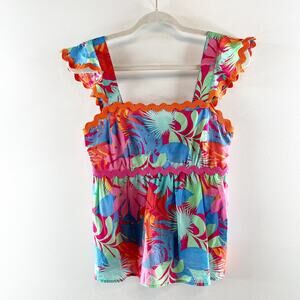 Greylin Skyler Ruffle Scallop Trim Babydoll Square Neck Tropical Top Pink Small
