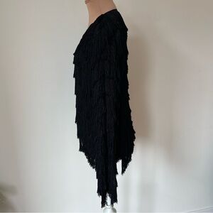 Gryphon Silk Fringe Open Front Black Jacket Size XS