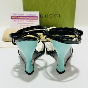 Gucci 37/ US 7 Two-Toned Dora Embellished Crystal Wedge Black Sandals NIB $1,250
