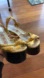 Gorgeous authentic Gucci Allie platform open toe heels with ankle strap. Large faux pearls and metal studs on heels. I have NEVER received so many compliments as I have with these shoes. Truly gorgeous. Decent condition, some visible wear but nothing too bad. 5” heel 2.5” platform.
