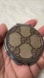 Chic Gucci compact mirror with iconic beige pattern and sleek silver edge. Ideal for quick touch-ups.