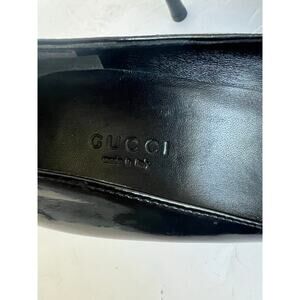 Gucci Black Patent Leather Round Toe Slip On Mid Heel Pumps Sz 6C Wide EU 36C