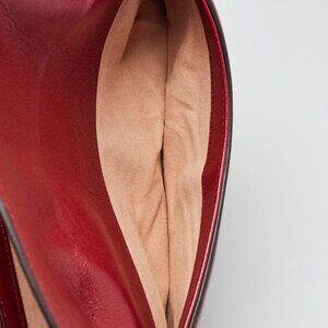The exterior is clean and beautiful. The tweed fabric has no signs of wear. The leather trim is clean with some creasing present. The hardware is crisp and bright. The interior lining has some small red stains and light rubbing present.