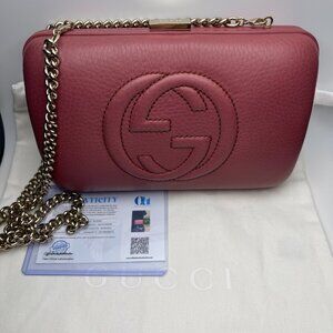 Gucci Calfskin Leather Soho Hard Case Clutch Shoulder Bag -Mauve/Pink - Preowned