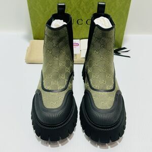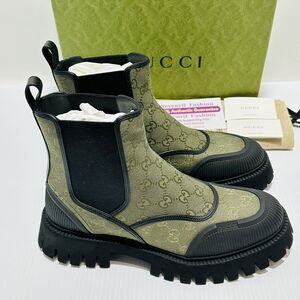 Gucci GG Jacquard Canvas Ankle Chelsea Boots Green Black 10.5/US 11 NIB $1,150