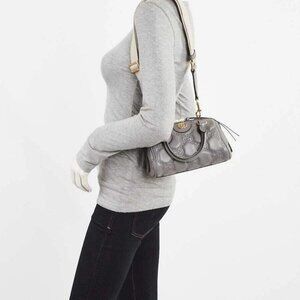 The leather is clean and shows no wear. The handles are clean and the shoulder strap is clean with natural creasing. The hardware is bright and crisp. The interior lining is clean and shows no wear.