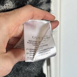 Gucci Leopard Effect V Neck Mohair Sweater Black Gray XS