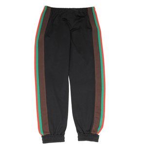 Gucci Mens Track Pants Large Black Green Red Stripped Drawstring Cotton Joggers