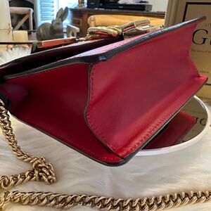 This gorgeous bag is in very good to excellent condition! The greed and red ribbon with gorgeous stars on the end is tied on and can be used however you wish! This piece is clean and corners are clean!