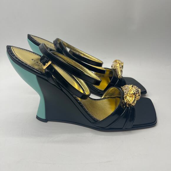 Gucci Tiger Head Accent Leather Sandals Size EU 36.5 US 6.5