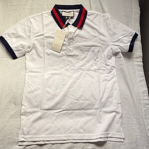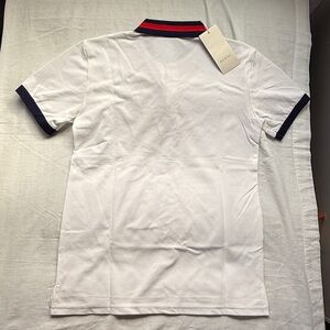 Gucci polo in white. blue and red accents.