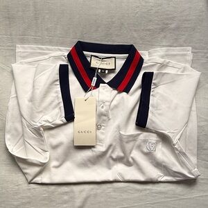 Gucci White Polo with Blue and Red Accents