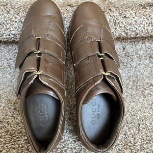 Gucci Women's Brown Leather Snap Strap Shoes .