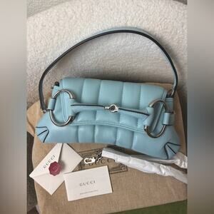 Gucci baby Blue Shoulder Horsebit Chain Small Leather Shoulder Bag