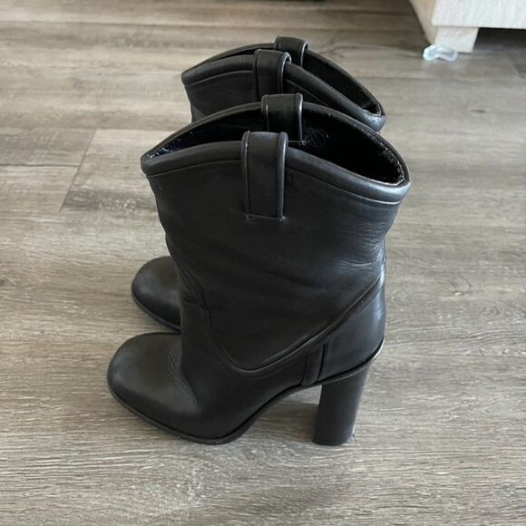 Gucci Black Leather Block Heel Ankle Boots Size 36.5