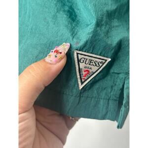Guess Green Stretch Waist Drawstring Nylon Jogging Shorts Small