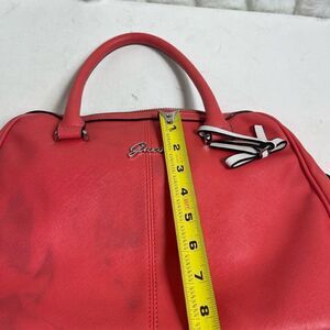 Guess bright orange satchel/Shoulder bag with gold tone hardwares. Top zipper the inside lining has a zipper a two side pockets pre owned no tear clean does have transfer marks on the faux leather doesn’t affect the beauty of the the bag see all pictures any questions please message