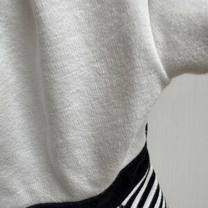 This stylish dress from Gymboree combines a solid white top with a black and white striped skirt in a flattering fit and flare design. Featuring a crew neck and puff cap sleeves, it's perfect for a casual day out.
