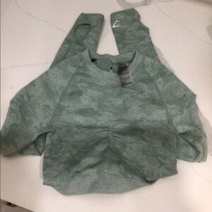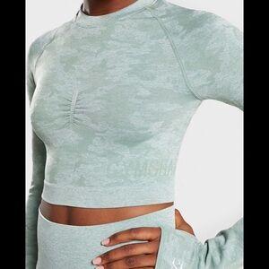 Gymshark Women's Camo Seamless Long Sleeve Crop Top Sage Green XS.