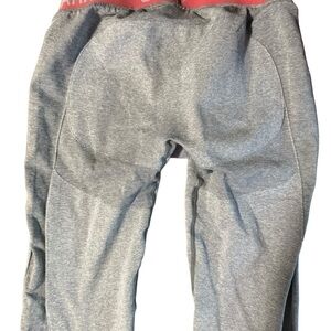Elevate your workout wardrobe with these Gymshark Flex Leggings in a stylish light gray and pink color combo. With high-rise waist and compression technology, these leggings provide both comfort and support during any workout. The blended fabric of polyester, spandex, and polyamide ensures a stretchy and breathable fit, perfect for gym and training activities such as weightlifting and bodybuilding. The interior tag has been cut out.