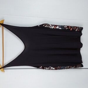 H & M Womens Sequin Black Tank Top DRESSY Silver/ Browns Sparkle Sz.L