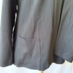 Womens size Medium, black, 2-piece tank and open front cardigan, cardigan has cute pleated back detail and pockets.