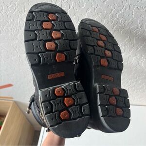 Has Harley Davidson metal logo all over boots! Genuine full grain thick sturdy leather, Oil resistance outer soles, full length cushion sock lining, Goodyear welt construction soles, great quality!