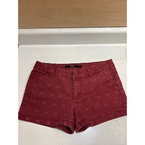 HARPER Maroon Pink Kitty Print 3” Mid Rise Stretch Chino Shorts M