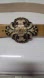 Distressed leather belt by Harrods of London. Featuring a large, ornate buckle with cream enamel and brown rhinestone detailing. Marked a size medium with five hole adjustments from 31"-35", total length of 38½". Gently pre-loved with normal wear markings, see all photos for reference.
