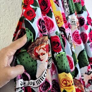 HELL BUNNY Skirt Small Dias De Los Muertos Roses A-Line Rockabilly Full Sweep