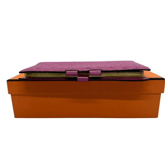 HERMES Small Notebook/Agenda Ostrich Fuschia Pink - ULTRA RARE EUC with box