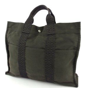 HERMES tote bag ale line gray gray canvas Auth used T18240
