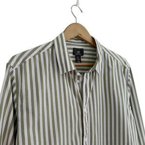 H&M Button Up Striped Poplin Regular Fit Shirt Mens Size Large Classic Modern