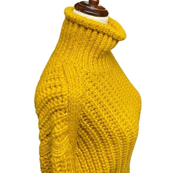 H&M mustard yellow, chunky knit, turtle neck. Cropped. Pullover. 10% Wool 90% acrylic.